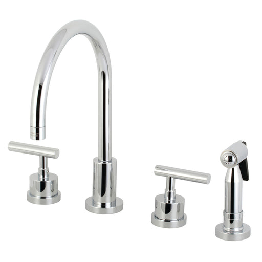 Kingston BrassKingston Sona KS8721CMLBS - Manhattan Double-Handle 4-Hole Widespread Kitchen Faucet with Brass Sprayer, Polished Chrome Embellish your contempo...