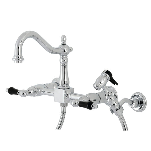 Kingston BrassKingston Heirloom KS1261PKLBS - Duchess Two-Handle 3-Hole Wall Mount Bridge Kitchen Faucet with Brass Sprayer, Polished Chrome Crafted in commen...