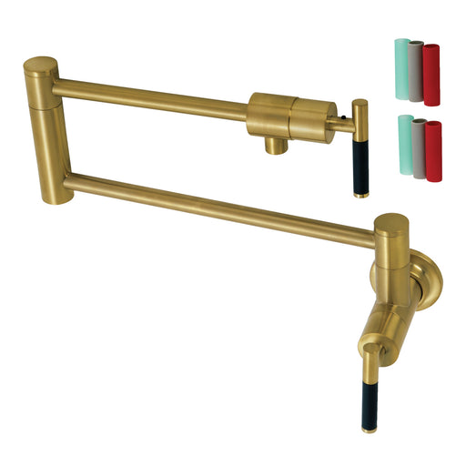 Kingston BrassKingston Sona KS4107CKL - Kaiser Two-Handle 1-Hole Wall Mount Pot Filler Faucet, Brushed Brass This faucet tastefully interweaves top-notch ergo...