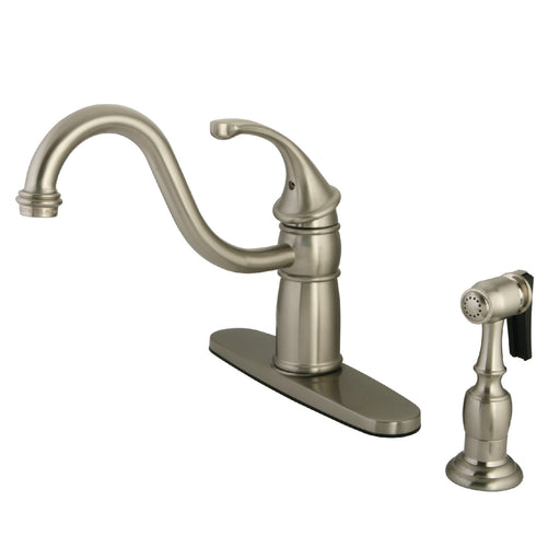 Kingston BrassKingston Sona LS8718CTLBS - Continental Single-Handle 1-or-3 Hole Deck Mount Kitchen Faucet with Brass Side Sprayer, Brushed Nickel Transcend yo...
