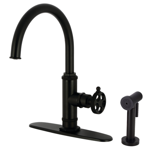 Kingston BrassKingston Heirloom GSY7700ACLBS - American Classic Single-Handle 2-or-4 Hole Deck Mount Kitchen Faucet with Brass Side Sprayer, Matte Black This ...