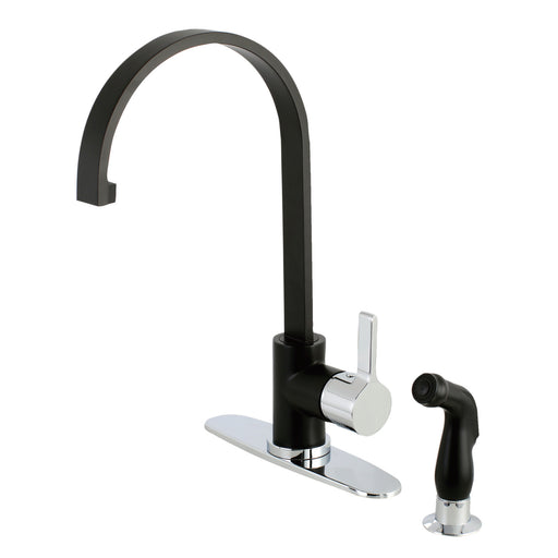Original price $649.95Original price $649.95 - Original price $649.95Original price $649.95Current price $487.46$487.46 - $487.46Current price $487.46| /Kingston Sona LS8717CTLSP - Continental Single-Handle 2-Hole Deck Mount Kitchen Faucet with Side Sprayer, Matte Black/Polished Chrome