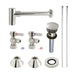This contemporary style vessel sink plumbing kit consists of all the necessary components for installing a waste water draining system. The parts included are single handle compression angle stops, 30" bullnose lavatory supply lines, 1/2" IPS bell flanges, a 13-7/8" bottle-trap, mounting ring and a 22 gauge European Umbrella drain with overflow hole. Constructed of high quality material and a tarnish-resistant finish, designed for long-lasting performance. Available in a variety of stunning finishes ready to match any home decor.
