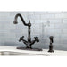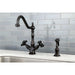 Kingston Heirloom KS1235PKXBS - Duchess Two-Handle 2-or-4 Hole Kitchen Faucet with Brass Sprayer, Oil Rubbed Bronze