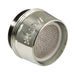 Installed at the ends of household faucets, aerators are designed with mesh screens to reduce splashing and dripping in sinks. A mixture of water and air is delivered while also helping to conserve water. This aerator's thread size: US male 15/16"-27 UNS connection. The water flow rate is 3.8 gallons per minute (GPM).