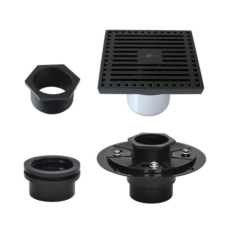 Kingston Watercourse BSFK4464MB 4-Inch Brass Square Grid Shower Drain with Flange, Matte Black