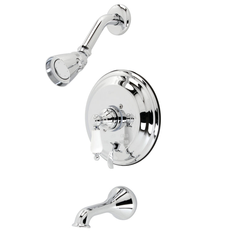 The exquisite design of this tub and shower faucet tastefully flatters the elegant architecture of traditional homes with its fine detailing. Complete with an easy-to-turn lever handle, an optimum bathing experience awaits. Enjoy the sturdy brass construction and premium polished chrome finish for a fixture that will last for years to come. A pressure balanced valve is not included, needs KB36310V for a complete set.