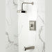 Transform your shower into a luxurious haven with our elegantly designed transitional tub & shower set. Featuring a traditional 11-inch shower arm and 8-inch rain showerhead, this set offers a sophisticated whimsical aesthetic that enhances the overall look of your bathroom. The modern tubular handle not only adds to the timeless appeal but also provides seamless functionality. Enjoy the refreshing experience of a large rain showerhead without the need for a full bathroom remodel. Additionally, the set includes a 10-inch diverter tub spout, ensuring ample reach into your bathtub for an all-encompassing bathing experience.