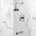 Transform your shower into a luxurious haven with our elegantly designed transitional tub & shower set. Featuring a traditional 11-inch shower arm and 8-inch rain showerhead, this set offers a sophisticated whimsical aesthetic that enhances the overall look of your bathroom. The modern tubular handle not only adds to the timeless appeal but also provides seamless functionality. Enjoy the refreshing experience of a large rain showerhead without the need for a full bathroom remodel. Additionally, the set includes a 10-inch diverter tub spout, ensuring ample reach into your bathtub for an all-encompassing bathing experience.