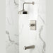 Transform your shower into a luxurious haven with our elegantly designed traditional tub & shower set. Featuring an 11-inch shower arm and an 8-inch rain showerhead, this set offers a sophisticated whimsical aesthetic that enhances the overall look of your bathroom. The traditional cross handle not only adds to the timeless appeal but also provides seamless functionality. Enjoy the refreshing experience of a large rain showerhead without the need for a full bathroom remodel. Additionally, the set includes a 10-inch diverter tub spout, ensuring ample reach into your bathtub for an all-encompassing bathing experience.