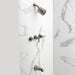 Complete with easy-to-turn lever handles, an optimum bathing experience awaits. Enjoy the sturdy brass construction and premium brushed nickel finish for a fixture that will last for years to come. This tub and shower faucet's modern features create a bold and edgy design in your bathroom. Internal valve hardware is included for your use.