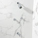Complete with easy-to-turn lever handles, an optimum bathing experience awaits. Enjoy the sturdy brass construction and premium polished chrome finish for a fixture that will last for years to come. This tub and shower faucet's modern features create a bold and edgy design in your bathroom. Internal valve hardware is included for your use.
