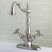 Kingston Heirloom KS1438BEX - Essex Double-Handle 1-or-3 Hole Deck Mount 4-Inch Centerset Bathroom Faucet with Brass Pop-Up, Brushed Nickel