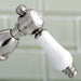 The graceful elegance of timeless design is beautifully merged between British flair and Victorian delicacy within this faucet's white porcelain levers. Single-hole bathroom faucets with optional deck plates are ideal for smaller bathrooms and feature an easy 1 or 3-hole installation. Remove the deck plate for an ease of cleaning and more streamlined design. The Bel-Air two-handle bathroom faucet with brass pop-up and cover plate and its featured sturdy brass construction and premium brushed nickel finish are guaranteed to glamorize your home's traditional ensemble for years to come. Varnish your bathroom with this state-of-the-art fixture. A matching finish drain is also included.