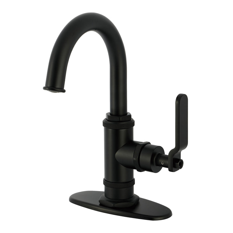 Kingston Sona KSD2210KL - Whitaker One-Handle 1-Hole Bathroom Faucet with Deck Plate and Push Pop-Up Drain, Matte Black