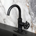 This faucet's modern features create a bold and edgy design in your bathroom. The Belknap single-handle bathroom faucet and its featured sturdy brass construction and premium matte black finish are guaranteed to glamorize your home's modern ensemble for years to come. Single-hole bathroom faucets provide a more streamlined look. Also, they will allow your bathroom to appear more spacious with the limited counter space they require. A matching finish drain is also included.