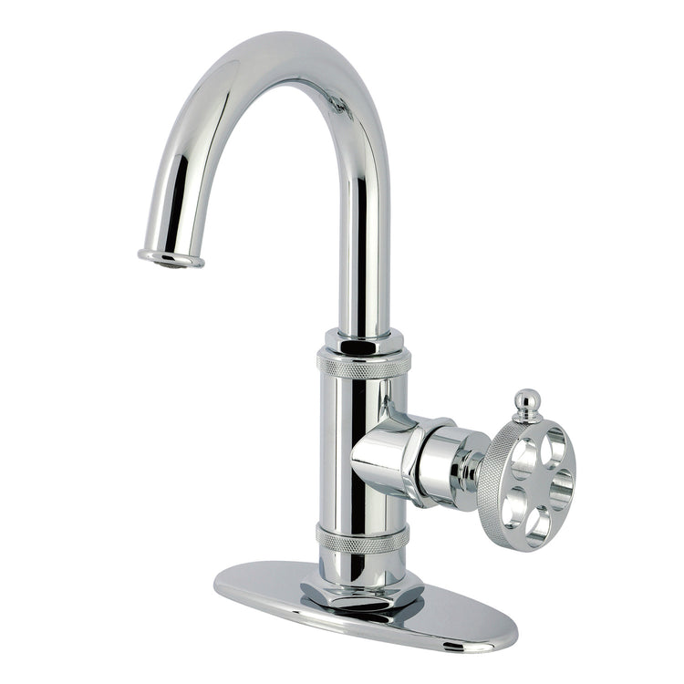 Kingston Sona KSD2211RKZ - Wendell One-Handle 1-Hole Bathroom Faucet with Knurled Handle, Deck Plate, and Push Pop-Up Drain, Polished Chrome