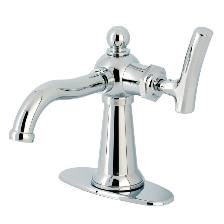 Kingston Tulare KSD3541TKL - Hallerbos One-Handle 1-Hole Bathroom Faucet with Deck Plate and Push Pop-Up Drain, Polished Chrome