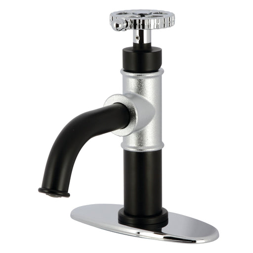 Kingston BrassKingston Sona KSD2821RKX - Webb One-Handle 1-Hole Bathroom Faucet with Knurled Handle, Deck Plate, and Push Pop-Up Drain, Matte Black/Polished Chr...