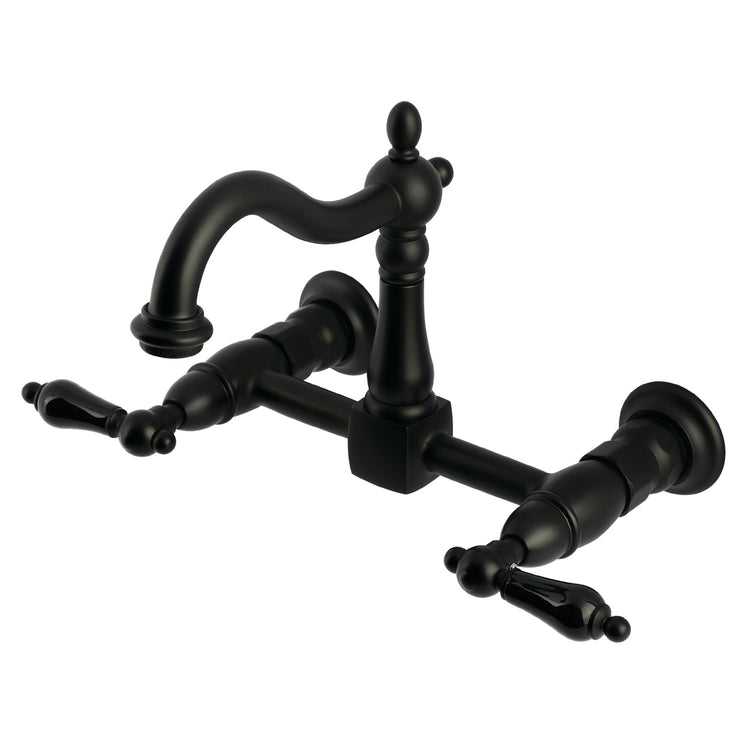 Kingston Heirloom KS1260PKL - Duchess Two-Handle 2-Hole Wall Mount Bridge Kitchen Faucet, Matte Black