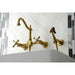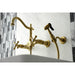 Kingston Heirloom KS1267AXBS - Heritage Two-Handle 3-Hole Wall Mount Bridge Kitchen Faucet with Brass Sprayer, Brushed Brass