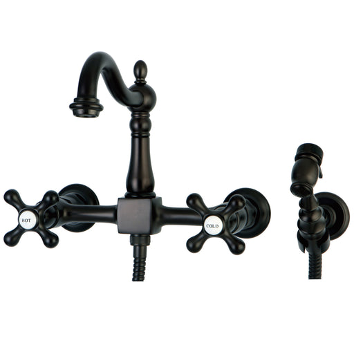 Kingston BrassKingston Heirloom KS1265AXBS - Heritage Two-Handle 3-Hole Wall Mount Bridge Kitchen Faucet with Brass Sprayer, Oil Rubbed Bronze A lavish spark ...