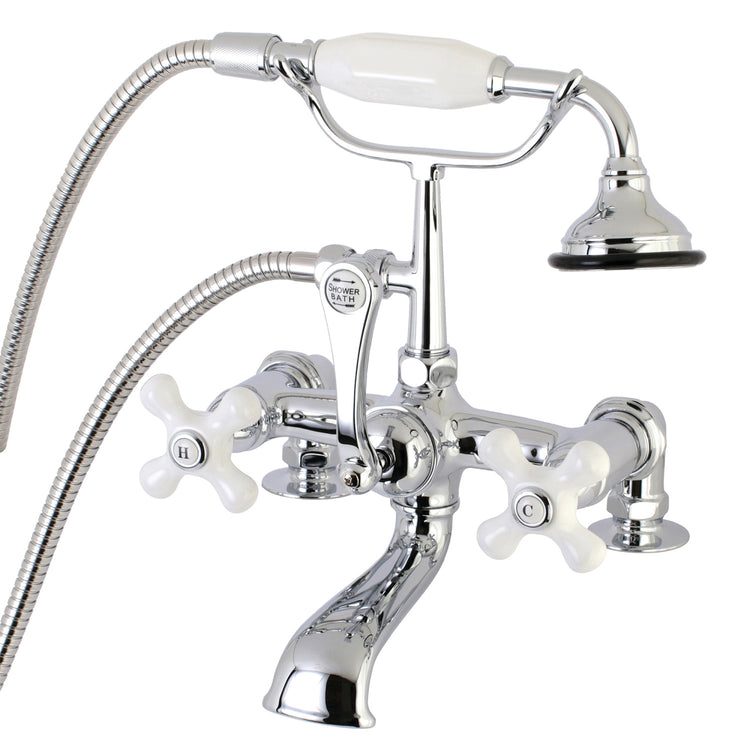 Kingston Heirloom AE212T1 - Aqua Vintage Three-Handle 2-Hole Deck-Mount Clawfoot Tub Faucet with Hand Shower, Polished Chrome