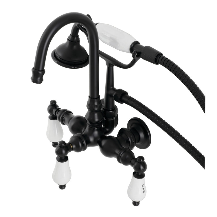 Kingston Heirloom AE9T0 - Aqua Vintage Three-Handle 2-Hole Tub Wall Mount Clawfoot Tub Faucet with Hand Shower, Matte Black