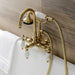 Wall mount clawfoot tub faucets are the perfect fixture to add decorative flair within your bathroom because of their unique architectural elements. With vintage opulence, this will complete your refined bathroom decorum with the help of its premium brushed brass finish and traditionally styled handheld shower. The solid brass construction also makes for a heavy, quality made product.