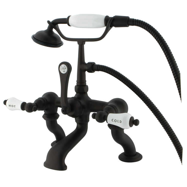 Kingston Heirloom CC413T5 - Vintage Three-Handle 2-Hole Deck-Mount Clawfoot Tub Faucet with Hand Shower, Oil Rubbed Bronze