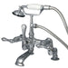 Vintage opulence finds itself within this deck-mount clawfoot tub faucet. As the perfect complement to your tub, this will complete your refined bathroom decorum with the help of its premium, glistening polished chrome finish and telephone style hand shower. The solid brass construction also makes for a heavy, quality made product.