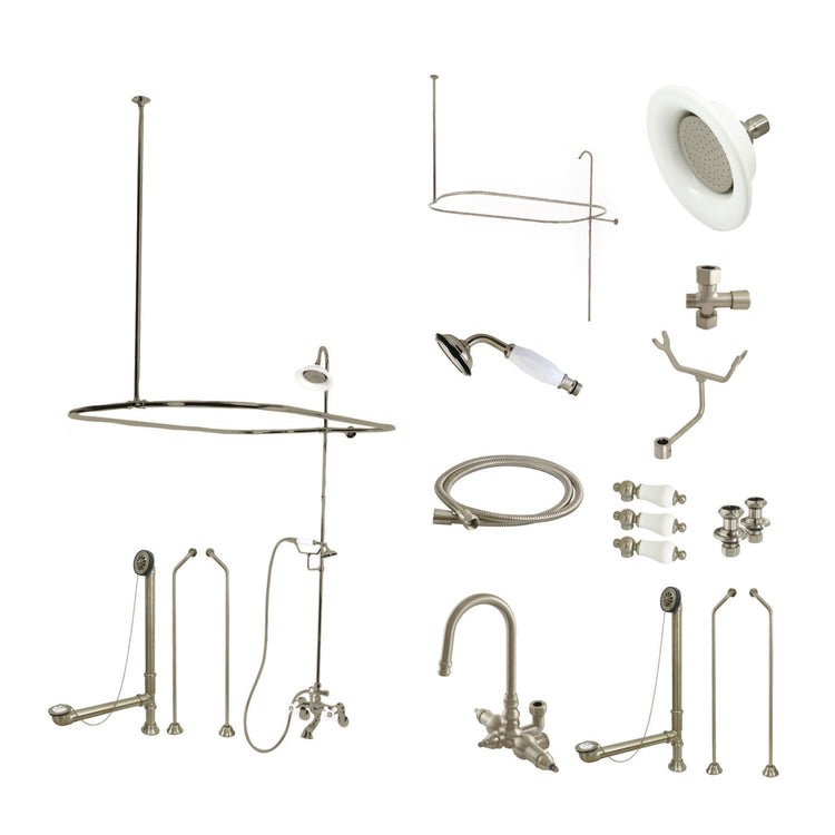 To wrap up your traditionally styled home decorum, incorporate the refinement of one of Kingston Brass' clawfoot tub faucet packages for an all-inclusive and reliable complement to your clawfoot tub. A top-to-bottom beautiful styling is achieved with these coordinated pieces from the shower enclosure down to the drain. All included products are made from sturdy materials and a premium finish for a reliable and long lasting set to last for years to come. Includes faucet, water supply lines, angle stop valves, drain, and shower enclosure.