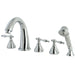 Kingston Tulare KS23615NL - Naples Three-Handle 5-Hole Deck Mount Roman Tub Faucet with Hand Shower, Polished Chrome