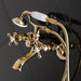 Wall mount clawfoot tub faucets are the perfect fixture to add decorative flair within your bathroom because of their unique architectural elements. With vintage opulence, this will complete your refined bathroom decorum with the help of its premium polished brass finish and traditionally styled handheld shower. The solid brass construction also makes for a heavy, quality made product.