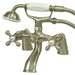 Kingston Heirloom KS267SN - Kingston Three-Handle 2-Hole Deck-Mount Clawfoot Tub Faucet with Hand Shower, Brushed Nickel