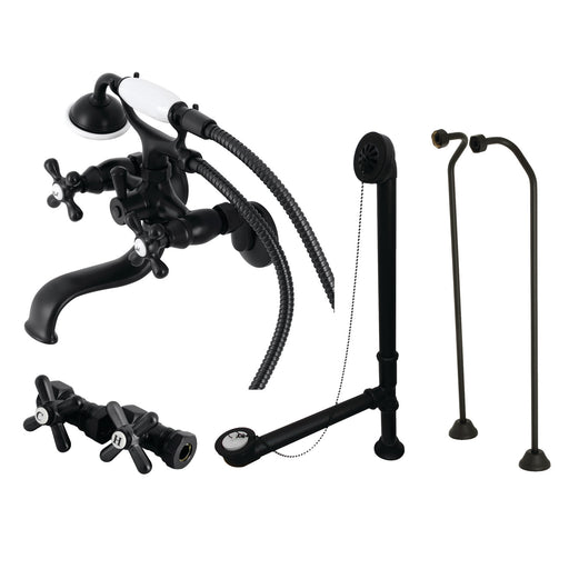 Kingston BrassKingston Heirloom CCK225MBD - Vintage Three-Handle 2-Hole Tub Wall Mount Clawfoot Tub Faucet Package with Supply Line, Hand Shower and Tub Drain, ...