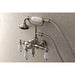 Kingston Heirloom AE23T8 - Aqua Vintage Three-Handle 2-Hole Tub Wall Mount Clawfoot Tub Faucet with Hand Shower, Brushed Nickel