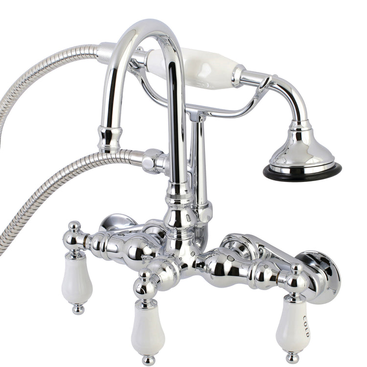 Kingston Heirloom AE304T1 - Aqua Vintage Three-Handle 2-Hole Tub Wall Mount Clawfoot Tub Faucet with Hand Shower, Polished Chrome