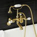 Kingston Heirloom AE55T7 - Aqua Vintage Three-Handle 2-Hole Tub Wall Mount Clawfoot Tub Faucet with Hand Shower, Brushed Brass