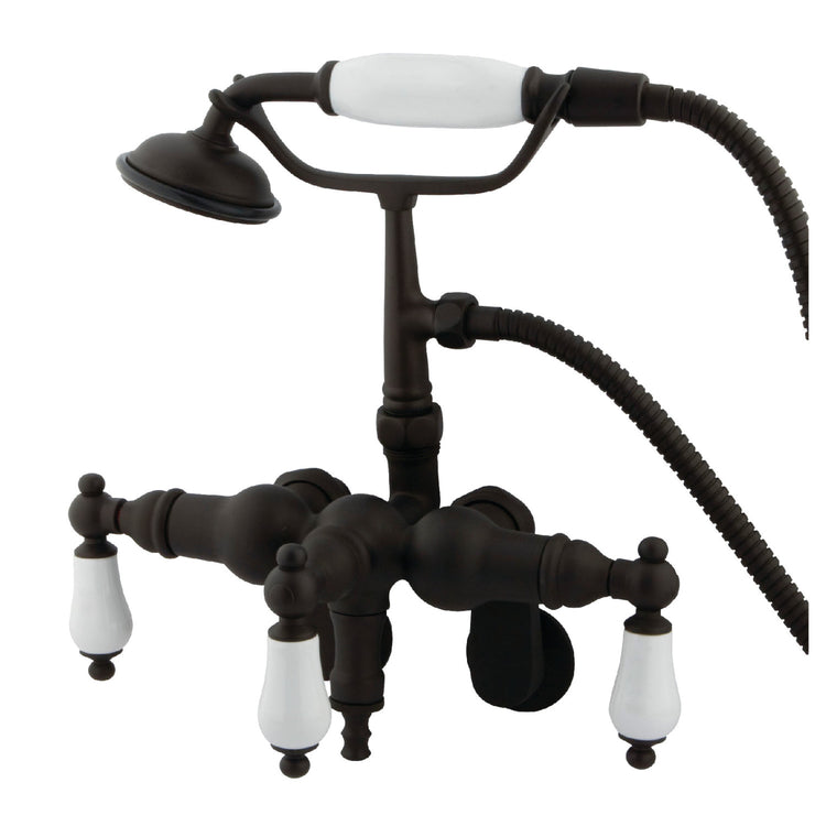 Kingston Heirloom CC421T5 - Vintage Three-Handle 2-Hole Tub Wall Mount Clawfoot Tub Faucet with Hand Shower, Oil Rubbed Bronze