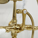 Wall mount clawfoot tub faucets are the perfect fixture to add decorative flair within your bathroom because of their unique architectural elements. With vintage opulence, this will complete your refined bathroom decorum with the help of its premium brushed brass finish and traditionally styled handheld shower. The solid brass construction also makes for a heavy, quality made product.
