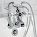 Wall mount clawfoot tub faucets are the perfect fixture to add decorative flair within your bathroom because of their unique architectural elements. With vintage opulence, this will complete your refined bathroom decorum with the help of its premium polished chrome finish and traditionally styled handheld shower. The solid brass construction also makes for a heavy, quality made product. Hand shower with porcelain handle and 59-inch hose.