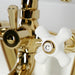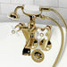 Wall mount clawfoot tub faucets are the perfect fixture to add decorative flair within your bathroom because of their unique architectural elements. With vintage opulence, this will complete your refined bathroom decorum with the help of its premium polished brass finish and traditionally styled handheld shower. The solid brass construction also makes for a heavy, quality made product. Hand shower with porcelain handle and 59-inch hose.