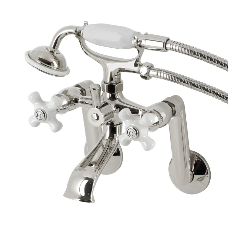 Kingston Heirloom KS269PXPN - Kingston Three-Handle 2-Hole Tub Wall Mount Clawfoot Tub Faucet with Hand Shower, Polished Nickel