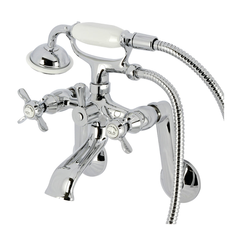 Kingston Heirloom KS289C - Kingston Three-Handle 2-Hole Tub Wall Mount Clawfoot Tub Faucet with Hand Shower, Polished Chrome