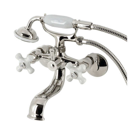 Kingston BrassKingston Heirloom KS225PXPN - Kingston Three-Handle 2-Hole Tub Wall Mount Clawfoot Tub Faucet with Hand Shower, Polished Nickel Wall mount clawf...