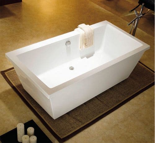 Nothing makes a bigger impact than a floor mirror. It serves two functions: You can look into it when getting ready in the morning and it’s a decor feature when not in use. Opt for a style with a decorative mirror and clean lines to match your acrylic or cast iron tub.
