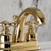 Kingston Restoration KB5612AX Double-Handle 3-Hole Deck Mount 4-Inch Centerset Bathroom Faucet with Pop-Up Drain, Polished Brass