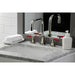 This faucet tastefully interweaves top-notch ergonomic design and the sheen of contemporary simplicity with its black silicone rubber coated handles and cylindrical facets. Ideal for more spacious bathrooms, widespread faucets are more spread apart and feature a 3-hole installation. The Kaiser widespread bathroom faucet with brass pop-up and its featured sturdy brass construction and premium finish are guaranteed to glamorize your home's contemporary ensemble for years to come. Furnish your home surrounding with the modern flair of this fixture. A matching finish drain is also included.