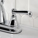Honor the refinement of antiquated traditional European craftsmanship with this faucet. Centerset bathroom faucets are ideal for smaller bathrooms and feature an easy 3-hole installation. The English Vintage 4-inch centerset bathroom faucet with brass pop-up and its featured sturdy brass construction and premium polished chrome finish are guaranteed to glamorize your home's traditional ensemble for years to come. This faucet will surely raise praise and admiration for its unique aesthetic. A matching finish drain is also included.